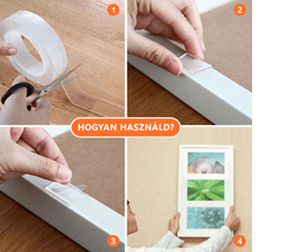 Extrém erős, többször is felhasználható, kétoldalas ragasztószalag otthonra, cégeknek.