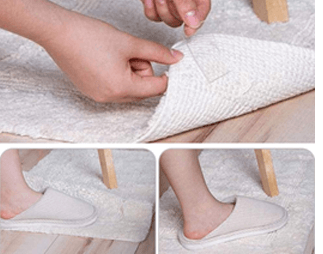 Téged is zavar, ha csúszkál, felpenderedik a szőnyeged? Vágj le egy csíkot a ragasztóból, helyezd a szőnyeg aljára, majd simítsd rá a padlóra!